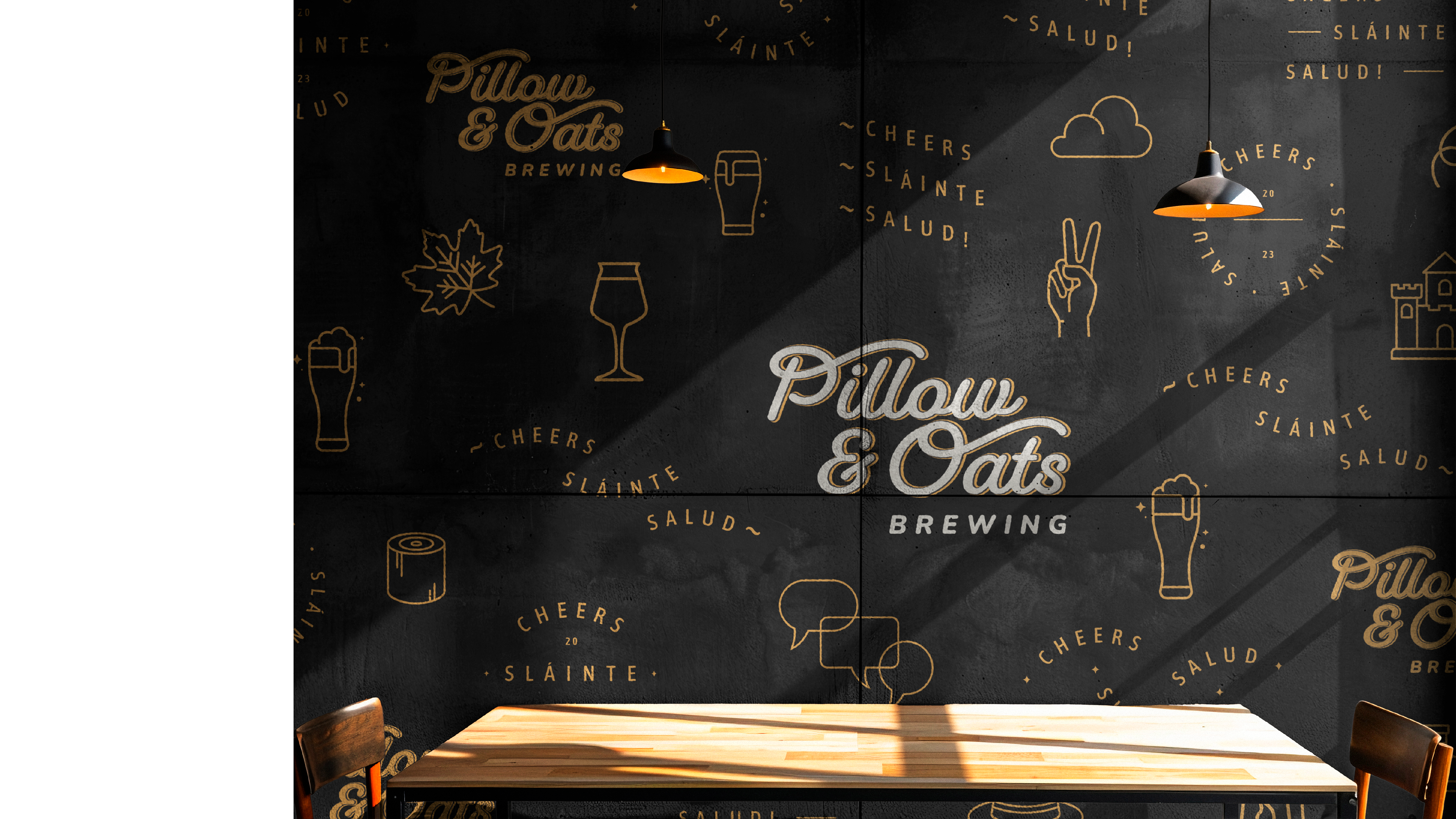 Max and Maria founded Pillow & Oats Brewing with a mission to create more than just a brewery—they envisioned a community gathering place that celebrated their passion for high-quality beer, their family roots, and the warmth they had experienced at breweries across the globe. To bring this to life, they needed a brand identity that conveyed inclusivity, quality, and the welcoming, family-oriented vibe they cherished. They also wanted to incorporate “Sláinte,” “Salud,” and “Cheers” into their branding—a nod to their Irish, Spanish, and American heritage, symbolizing unity and an open invitation to all.